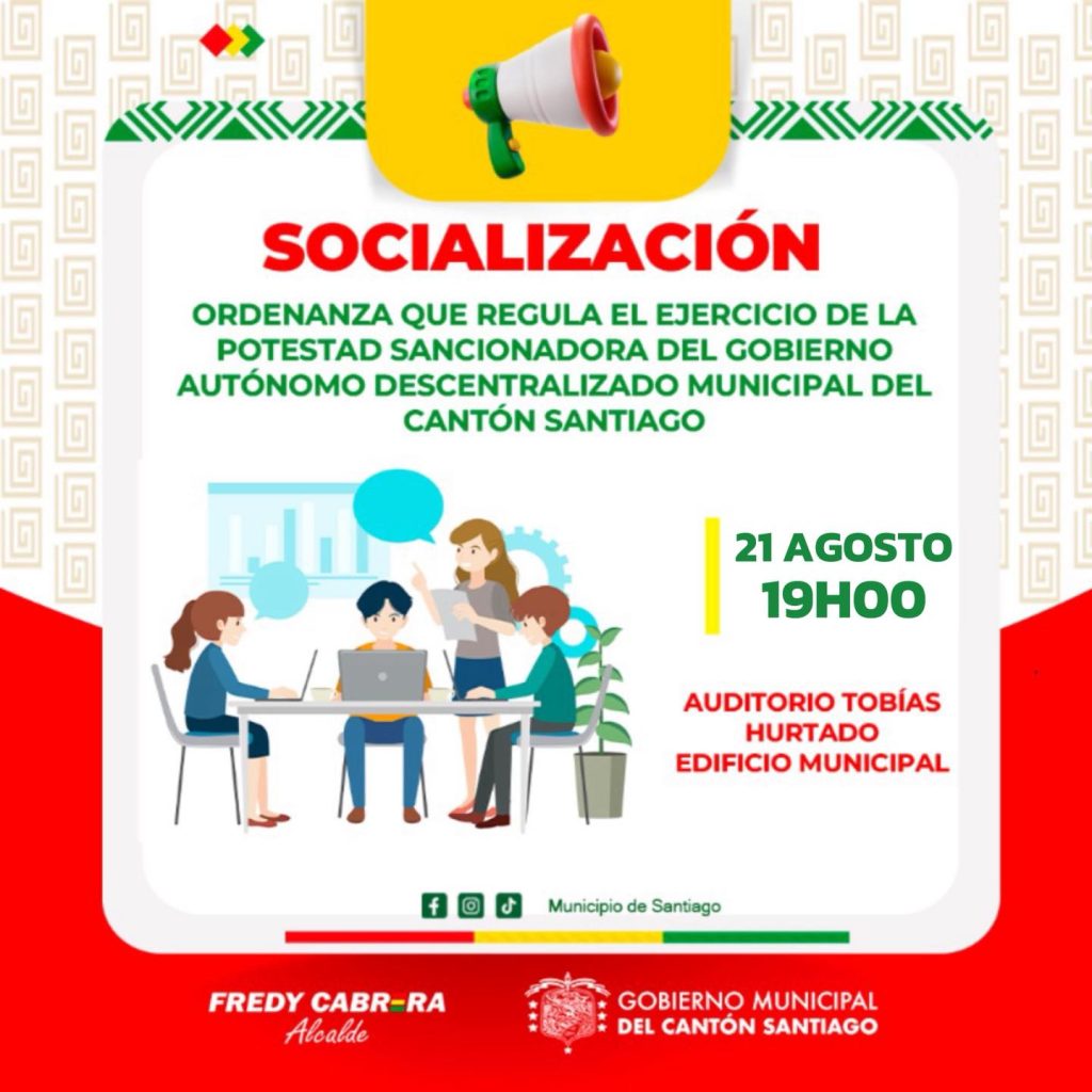 El GAD Municipal del cantón Santiago invita a la socialización de la Ordenanza que regula el ejercicio de la potestad sancionadora.